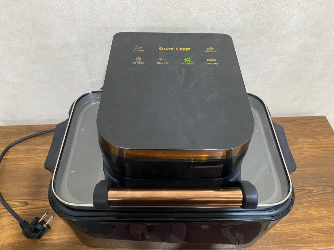 سرخ کن هوا پز ایر فرایر ۱۵ لیتری سیلورکرست مدل SL2025 SilverCrest توان ۲۴۰۰ وات SilverCrest Air Fryer 15L SL2025 بدنه استیل و مدرن و شیشه دوجه داره پیرکس