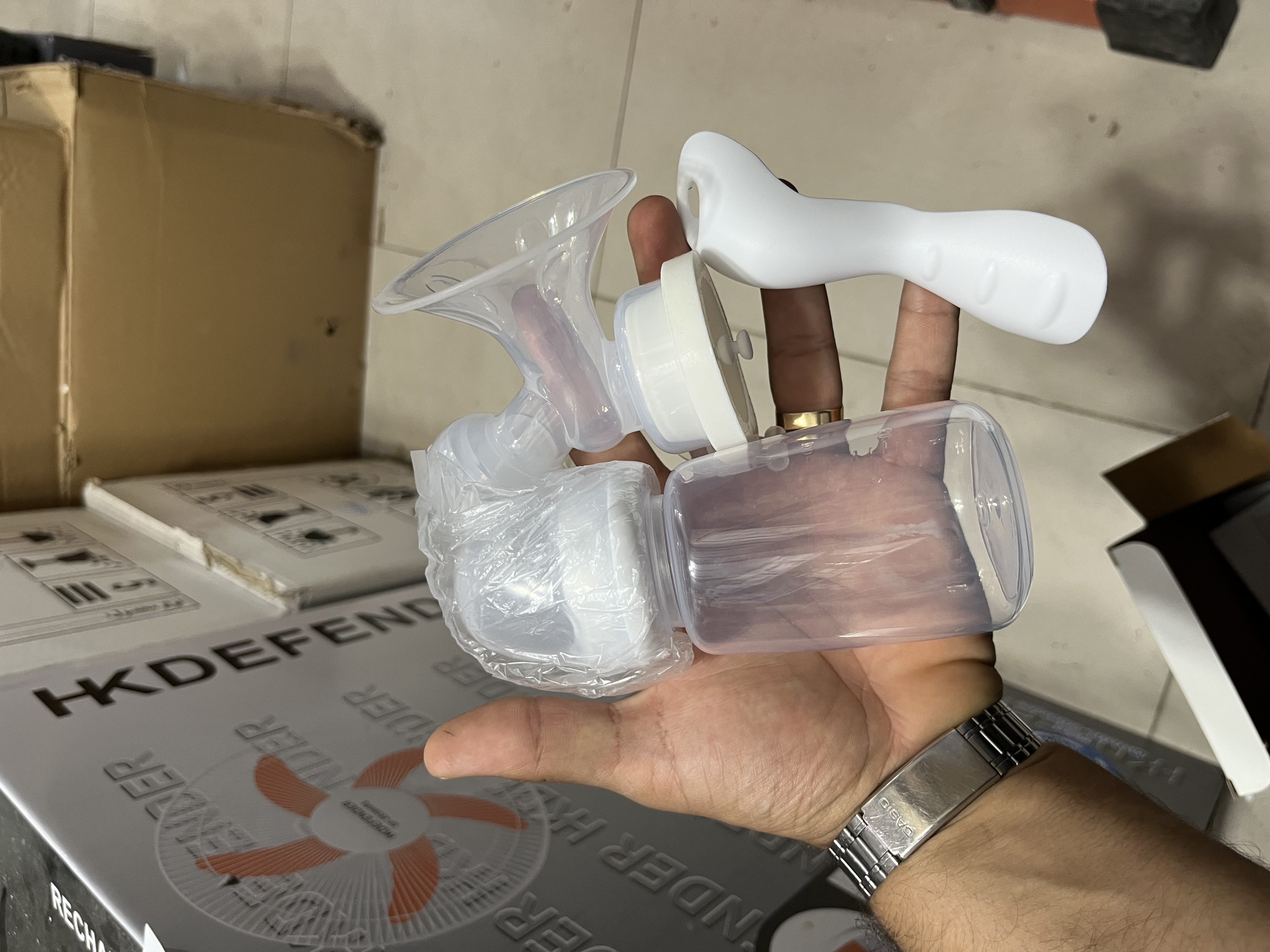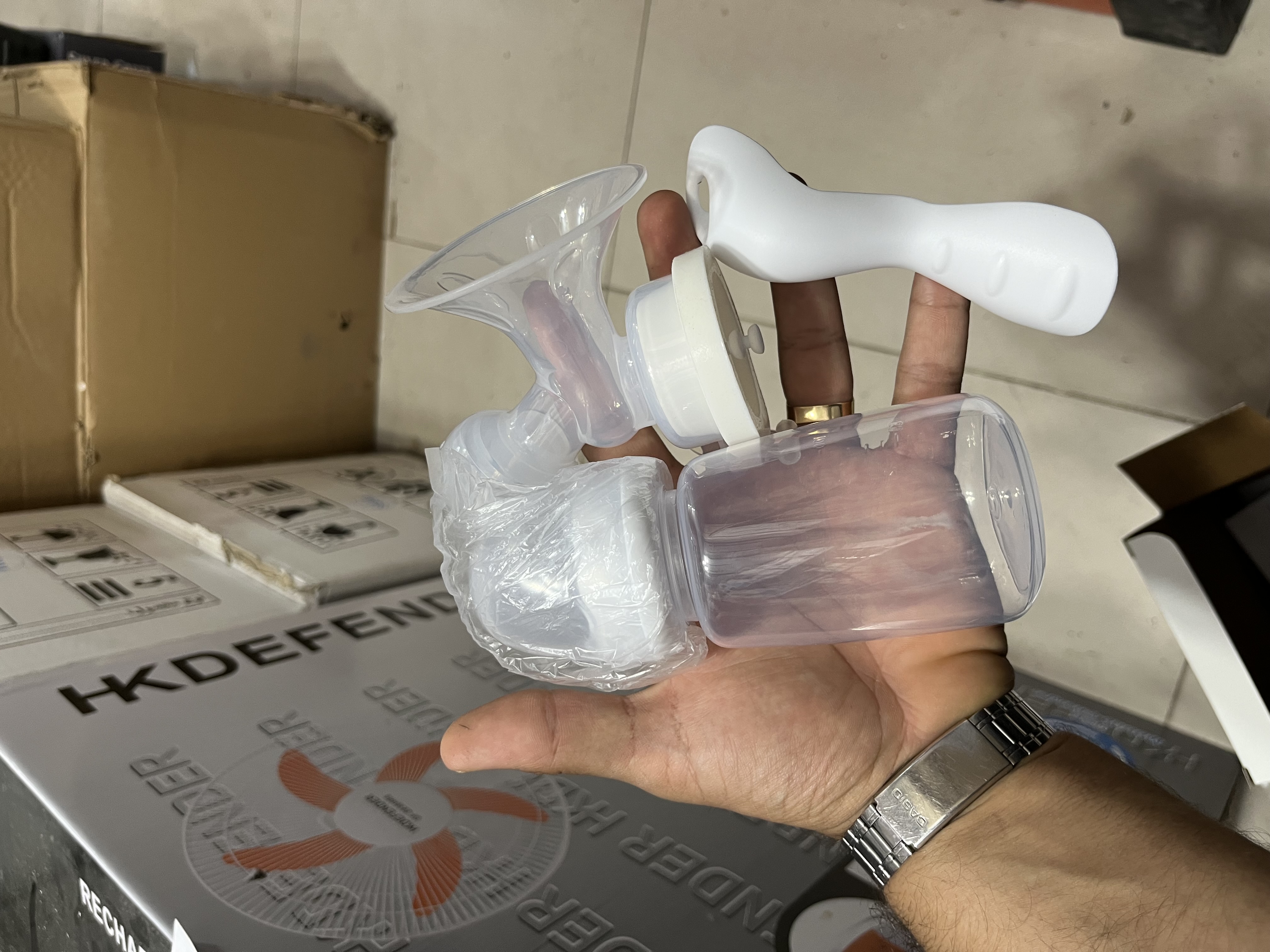 شیر دوش دستی به همراه پستونک شیر دوش همراه MY-370 همراه و مسافرتی مناسب مسافرت ومنزل و محل کار کوچک و بیجیبی به همراه مخزن نگه دارنده ی شیر 150ml