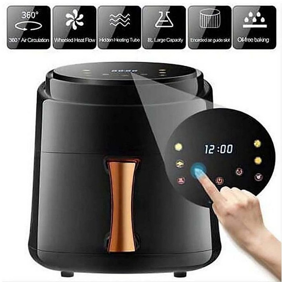 این دستگاه با تکنولوژی گردش هوای داغ، غذا را بدون روغن یا با حداقل روغن سرخ میکند. نتیجه: