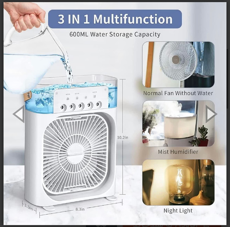 مینی کولر رومیزی مهپاش هفت رنگ با باتری شارژی قدرتمند لیتیوم یونی کتابی عمده