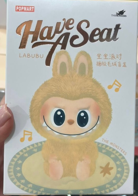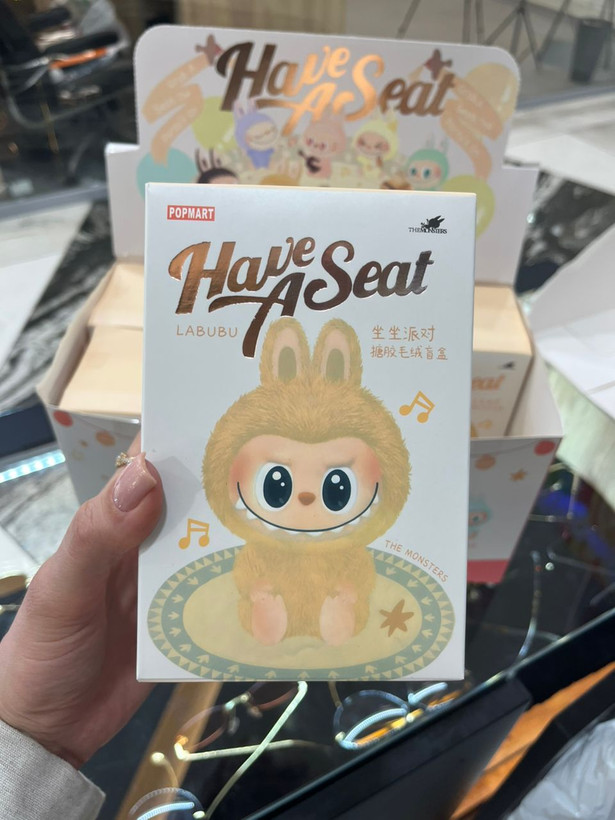عروسک لبوبو سوپرایزی نشسته Labubu Have a seat جعبه لیبل هلوگرامی طلایی برجسته اورجینال پاپ مارت مفصلی قیمت به روز شده ۱۴۰۴/۰۶/۲۵