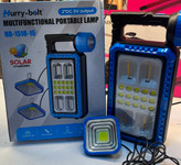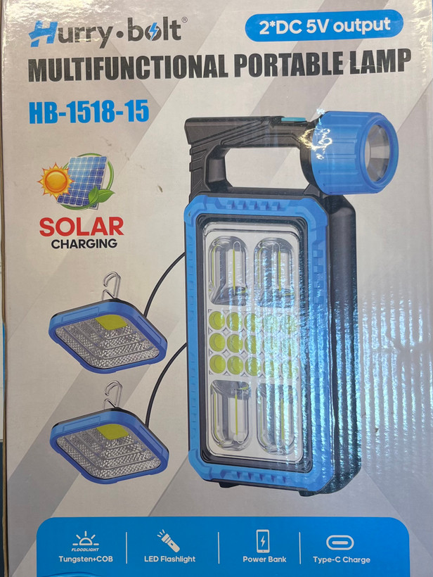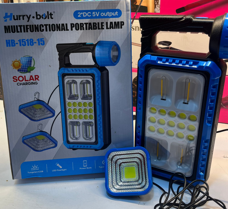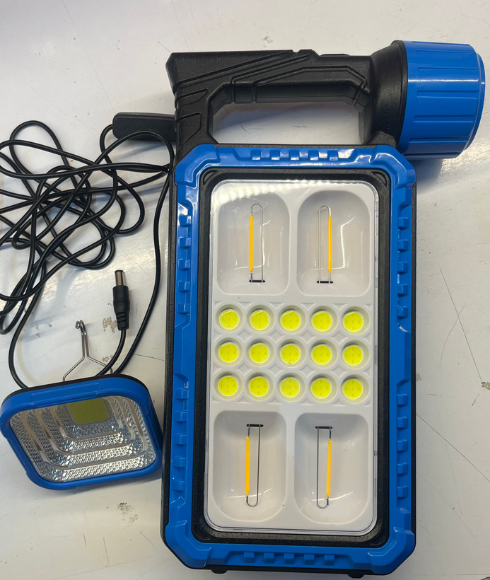 چراغ خورشیدی شارژی یا چراغ سولار همهکاره شارژی با پاوربانک خورشیدی و نور LED خورشیدی به همراه چراغ سیار سیم دار پرقدرت ۲۰۰ وات قیمت اقتصادی و همه کاره اکبند