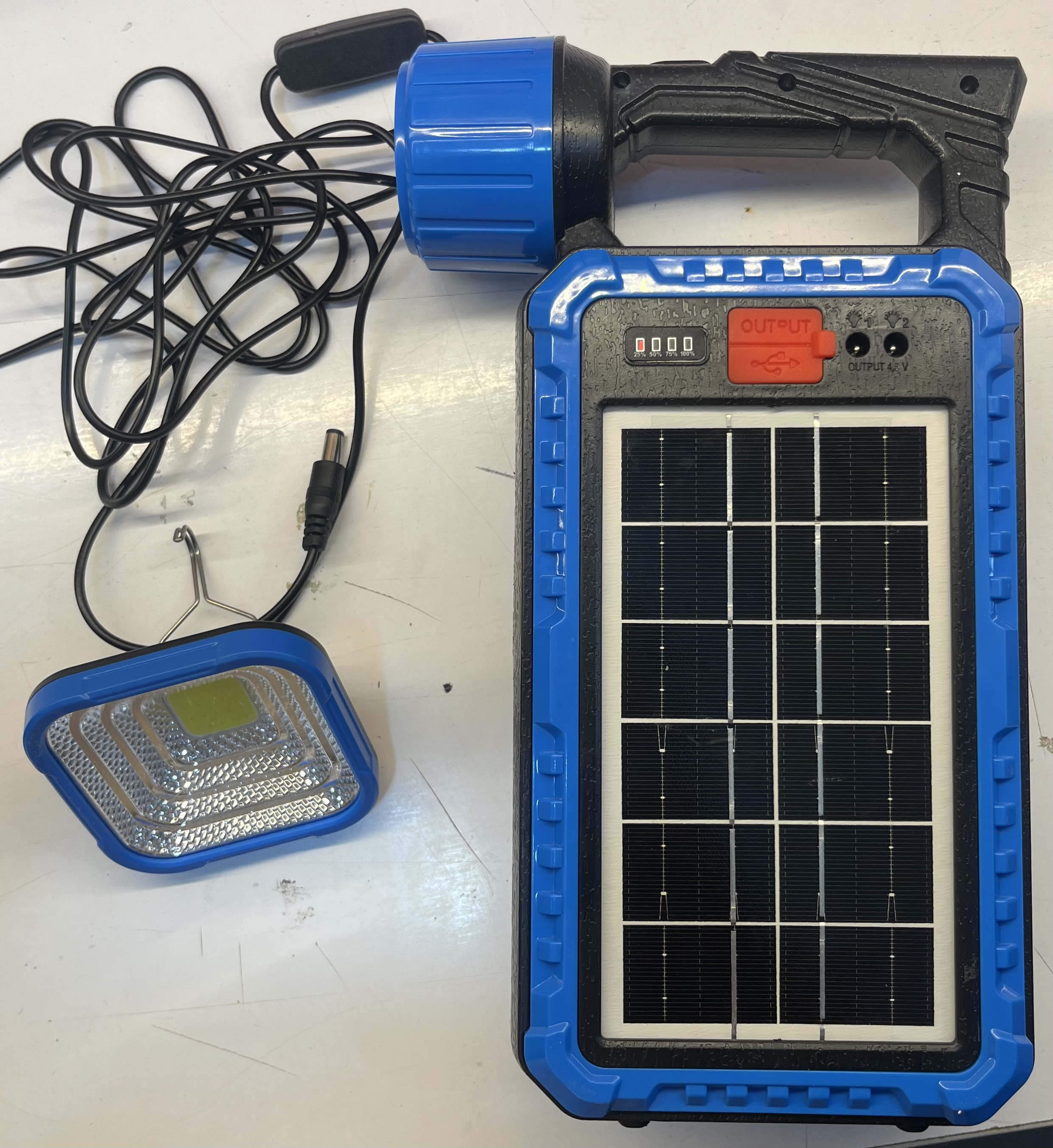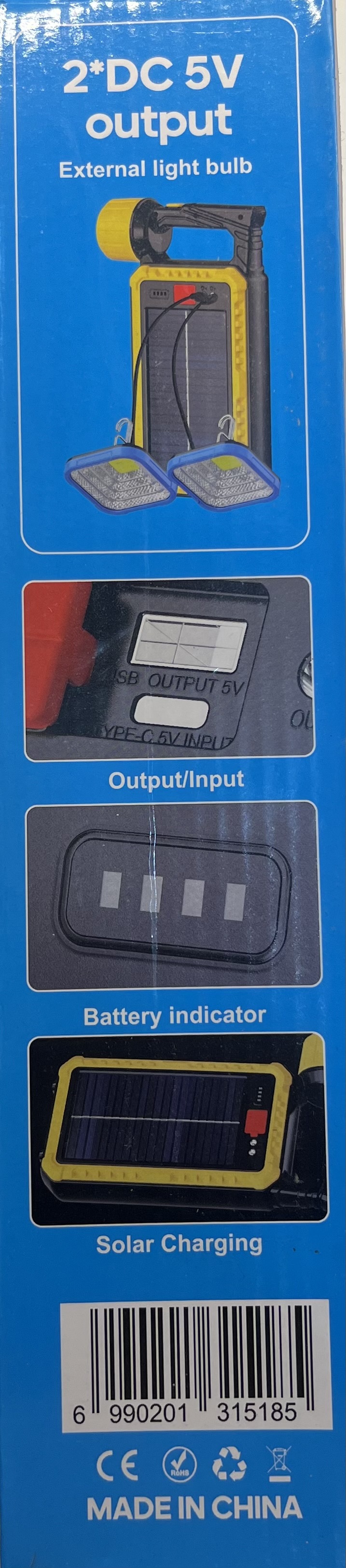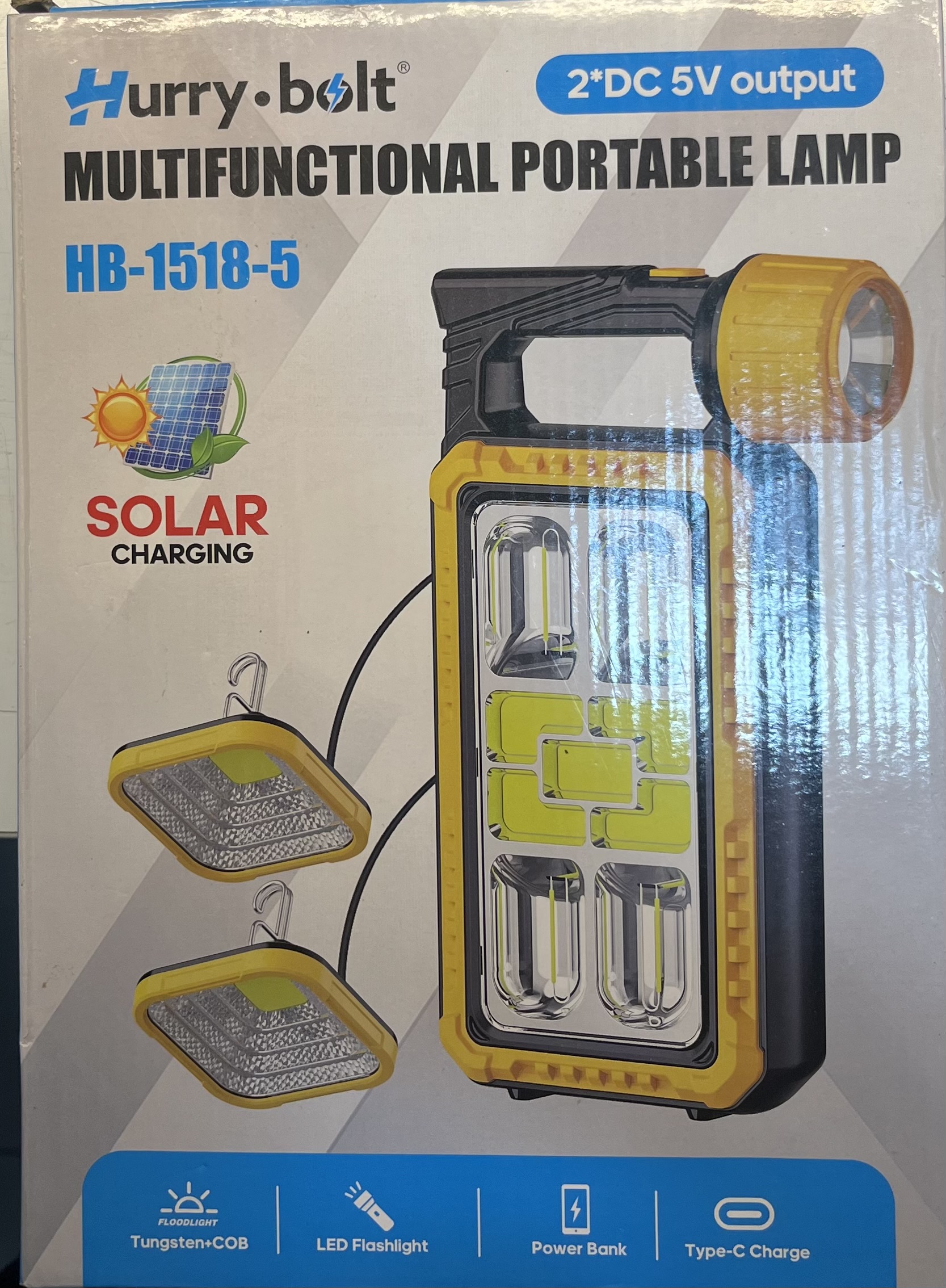 چراغ خورشیدی شارژی یا چراغ سولار همهکاره شارژی با پاوربانک خورشیدی و نور LED خورشیدی به همراه چراغ سیار سیم دار پرقدرت ۲۰۰ وات قیمت اقتصادی و همه کاره اکبند