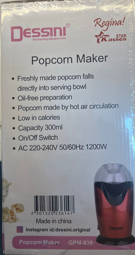 پاپکورنساز دسینی یا Dessini GPM-830 پاپکورن ساز آسانساز یا چس فیل ساز پاپکورن خانگی پفیلا ساز خانگی ارگانیک و اقتصادی