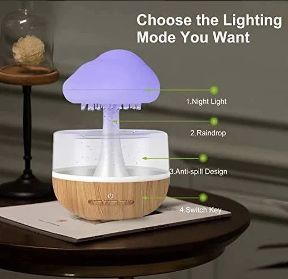 چراغ خواب رطوبتساز قارچی با صدای باران چراغ خواب قارچی و بارانی مناسب منزل و محل کار و اتاق خواب ارامش دهنده